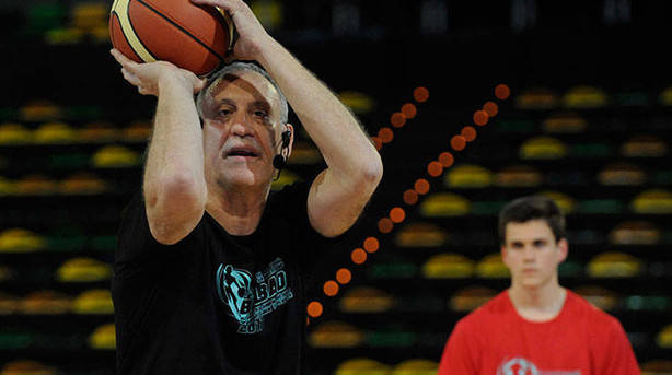 Regles: L’exercici comença amb un tirador al centre. Un defensor comença a una distància curta de l’atac. L’entrenador (o un company d’equip) passa la pilota al tirador i el defensor comença a defensar immediatament. El tirador ha de fer el llançament el més ràpid possible per evitar que l’oposició s’apropi.