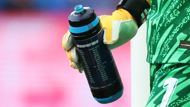 Després de finalitzar el matx, es va fer viral a les xarxes socials una imatge de l’ampolla del porter anglès, Jordan Pickford. A la seva ampolla d’aigua portava impresa uns apunts on analitzava la tendència de com eren els llançaments de penal dels futbolistes de Suïssa, estava escrit el nom de cada jugador i on habitualment xutaven (esquerra, centre o dreta) i com ho feien (per baix o per l’aire), així el porter tenia més informació per poder endevinar els llançaments de l’adversari.