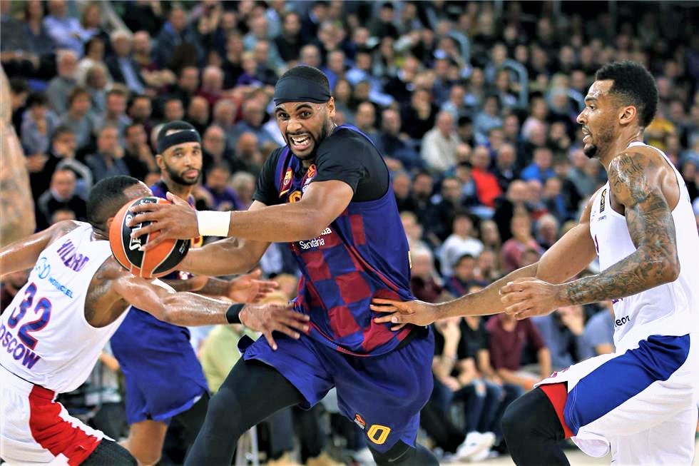 Lectura del FC Barcelona a la defensa de canvis dels blocs indirectes realitzada pel CSKA de Moscou: Brandon Davies vol fer un bloc indirecte perquè Nikola Mirotić pugui rebre alliberat.